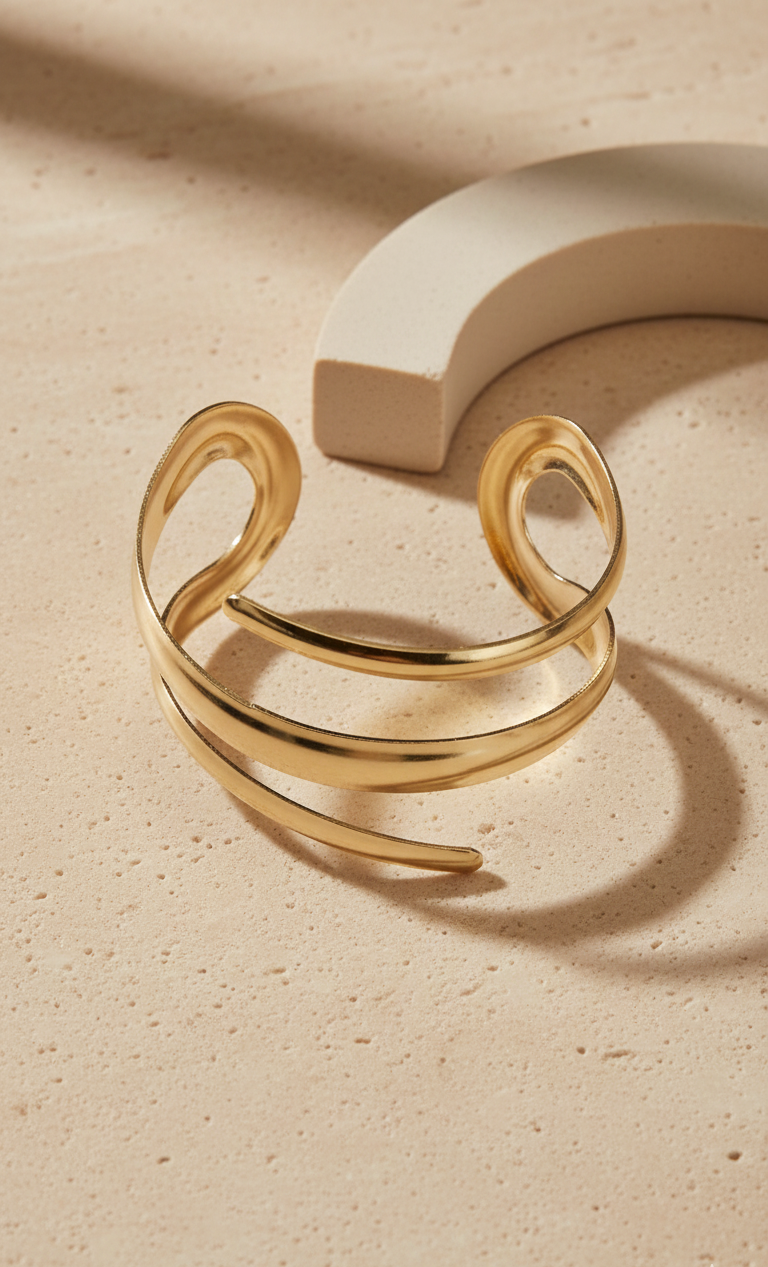 A refined gold-toned hand cuff with a smooth, elegant silhouette, designed for effortless everyday styling and modern sophistication.